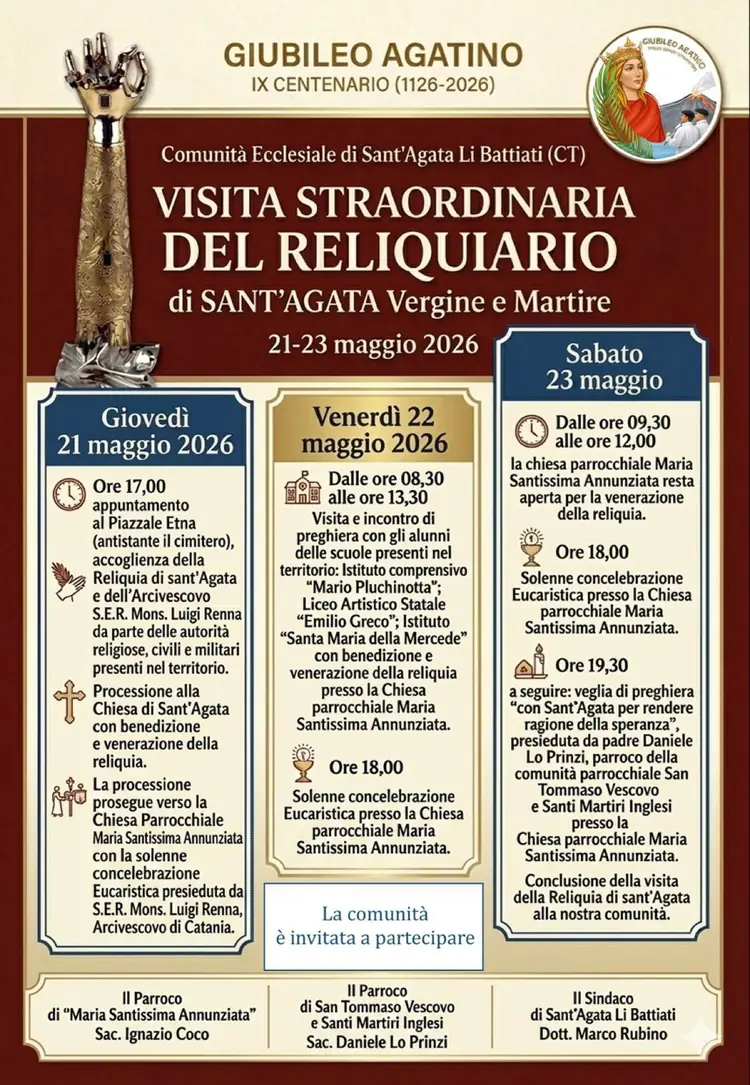 Visita Straordinaria del Reliquiario di Sant'Agata Vergine e Martire (dalle ore 17.00)